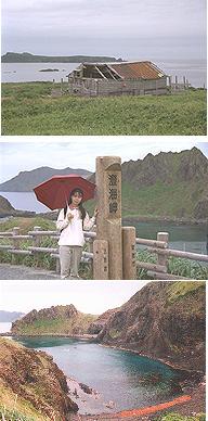 新婚旅行第2弾(1996年8月)である。 1996年8月に、相棒と二人で利尻・礼文へ行って来ました。 利尻・礼文の由来利尻島のリシリはアイヌ語の「リシリ」(海上の目印島)という意味から来 ている。礼文島も同様にアイヌ語で、「レブンシリ」(沖にある島)という意味 だそうだ。利尻島と礼文島は近くにあるが、地質的な由来が大きく異なる。利尻島は、 利尻岳の火山活動によってできた比較的新しい火山島で、そのため、標高が1721m と高い。島は円すい形をして、基本的に険しい山の島である。礼文島は、いち ど海中に没した島が再び隆起してできた島で、なだらかな丘陵の島である。島は 足跡の形をしている。 気候は共通していて、暖流の影響で冬は暖かい。といっても北海道としては だが。 ところで全然関係ない話だが、なんで北海道の島って、礼文[とう]・利尻[ とう]・奥尻[とう]っていうふうに、[島]を[とう]って読むんだろうね。日本の 他の島は、西表[じま]・伊豆大[しま] みたいに[しま]って読むのにね。外国の 島が、ハワイ[とう]・シチリア[とう]って読むことを考えると、北海道は外国扱 いみたいだね。 利尻礼文への足利尻と礼文、稚内の西に浮かぶ二つの島は、昭和初期までは、200kmも離れ た小樽とのつながりが深かった。利礼航路と言えば小樽便のことを指していたく らいだ。しかしニシンが捕れなくなってからは貿易港・小樽とつながる必要が無 くなったこと、小樽自身も地盤沈下したこと、船より鉄道を使う時代を迎えたこ と、などから礼文・利尻の物流のは稚内経由に変わってきた。現在では、小樽航 路は廃止、礼文・利尻への交通は海・空ともに稚内が玄関口である。利尻礼文へは、稚内港から船が一日に4・5便(夏期)、稚内空港から19人乗 り飛行機が1便。 利尻・礼文へ行くさて、今回私たちは、稚内へ行くのに飛行機を利用した。鉄道や船でゆっく りと、というのも考えたのだが、あまりに日数がかかるのと、交通費もかえって 高くついてしまう、ということで往復とも飛行機(関空-稚内の直行便)にした のだ。 飛行機といえば、早割だね。とにかく2ヶ月前になったら速攻で申し込 むが[吉]。早割に割り当てられている席は1割程度のようだし、便によっては早 割はおろか一般席まで無くなる可能性があるからね(実際 沖縄便はすごいぞ、 半日でなくなるぞ)。今回の旅行は、行きがモロお盆期間だったので、早割どころか割増料金を取 られたが、帰りは早割が取れたので、まぁ良かった。しかし行きと帰りの運賃が 2倍違うというのも、なんか凄まじいものがあるね。 飛行機が取れたら、次は宿だ。礼文も利尻も3泊ずつする予定だ。独身時代 は行き当たりばったりで宿を取っていたのだが、二人になると、そうも言ってい られない。特に「島の旅」では、一カ所の宿に連泊して、宿をベースにして行動 することが多いので、早めの宿の確保は必至というわけだ。 幸いにも礼文に関しては、YHが家族部屋を取ってくれたので、決定。利尻は 、直前まで3連泊できる宿が無く、日替わりでの宿泊も覚悟したが、幸いにもキ ャンセルが出た民宿があり、そこに決定。 初めて関空から出発。難波から関空へは南海のラピートαだ。足元広々、3 0分しか乗ってないのはもったいないぜ、と思うようないい電車だね。 関空からは稚内へ直行便、夏だけの運行だ。ちなみに429便というのはゴロ が悪いなぁ。 関空を飛び立つと神戸・宮津の上空から日本海を飛行。 軽食は寿司かサン ドイッチの選択、私がすし・相棒がサンドイッチをもらい、交換しながら食べた が、どちらもつまらなかったなぁ。 飛行機は、日本海沿岸に沿って飛行する。十和田湖や男鹿半島などよく見え た。 稚内空港からは、バスで稚内港へ移動。船まで時間があったので、近くの稚 内ドームの下でやっていた「稚内いーべや祭」を冷やかす。 礼文島へ稚内から礼文へ。礼文には香深と船泊に大きな港がある。最近まで船泊へい く船もあったのだが、現在は香深だけ。そのかわり空港は船泊に近いところにあ る。 稚内港の切符の販売は のーんびりしていて、出航が近づいているのに、 切符を買う人の列が途切れない。乗り遅れそうになり、けっきょく無札で乗船し 、船内で切符を買った。礼文島に泊まる礼文島でのお宿は「船泊YH」です。礼文には「桃岩荘」というYHがあっ て、私が学生の頃から、歌って踊っての「ネジのはずれた」YHという評判でし た。今回は、そこだけは泊まるまい、と考えておりました。私の好みではありま せんし、今回の旅行で初めてYHにとまる相棒もおるわけで、ここでYHに嫌悪 感でも抱かれたら、これから一生、旅行についてきてもらえなくなりますからね (これから一生、YHに泊まるつもりなんだなぁ、俺って)。 香深港に船が着 くと、さっそく‥‥「もっもいっわそお〜」、と大声で連呼しては、大旗を振っ ているお兄さんがいるではありませんか。ボサボサ頭に破れたジーパン、分厚い ガラス眼鏡、とまる