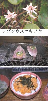 稚内ドームで開催されていた 「稚内いーべや祭り」 (写真・上・中) クイーン宗谷号(写真下) ![]() 海馬島から船泊方面を望む ![]() 礼文島北部の風景 写真中・下:スカイ岬 ![]() ちどりのちゃんちゃんやき と ウニ丼 |