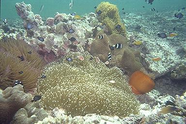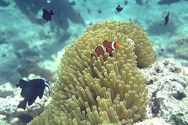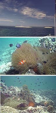 西表島を訪れるためには石垣島から船というのが、一般的でしょうな。石垣 島から高速船で50分。けっこう遠いのだ。ちなみに空港はないので、本土・沖 縄本島から直接乗り込むことはできない。 西表島は、沖縄県で2番目に大きな島であるが、島の中央部はジャングルな ので、一般の旅行者はまず立ち入ることはできない。人が住んでいるのは島の外 周部だけで、人口は石垣島の20分の1以下である。空港を作る土地も需要もない 島なのだろう。また島を一周する道路もないため、観光ポイントを回るのはけっ こう大変だ。バスもあまり走っていないし。観光にはレンタカー・レンタバイク が足となる。レンタサイクルもあるが、大きな島だし、けっこうアップダウンも あるのでお奨めはしないぞ。 西表島に泊まる 西表島での3泊は、すべて船浦にある「いるもて荘」YHにした。一つの島 の中心地に宿を取り、そこを拠点に動き回るというのが、最近の私の旅行パター ンだ。 いるもて荘は民宿との併営で、建物も食事内容も同じ。部屋を相部屋にする か、個室にするかといった違いだけのようだ。 このYHは高台にあり、建物の正面に大きめの芝生の庭がある。パラソルや ガーデンチェア・テーブルなどが置かれ、ちょっとしたリゾート気分を味わえる (しかし蚊が多い)。この庭からは海が見え、バラス島や鳩間島が見渡せる。な かなか気持ちのいい環境だ。 このYHは特色は、ダイビングに力を入れている ことであり、体験ダイビングも格安でできる。 部屋はこぎれいだ。沖縄の宿にはありがちだが、洗濯機や物干し台がやたら たくさんあるなぁという印象を受けた。 夕食は、まぁ普通。ミーティングはなかったが、9時頃にパイナップルが出 る、その名も「パイナップルタイム」があった。この時間帯を利用して、同じテ ーブルの人と情報交換をしたり、島縦断のメンバーを募ったりするようだ。また この時間の後、ダイビングに参加する人たちの打ち合わせや、ダイビングライセ ンス取得のための講習がある。 同じテーブルの人と近くの商店にアイスやら酒やらを買いに行き、その帰り に蛍虫をみた。正式にはイワサキマドホタルという名の蛍の幼虫らしいのだが、 道の端の方々でぼーんやりとした光を放つ。八重山独特の夏の風物だ。 体験ダイビング さて体験ダイビングである。ダイビングは飛び込み、という意味でしょうが 、海でのダイビングは、スキューバダイビング、つまり潜りを意味します。 では「体験」ダイビングとは何か?っていうと、普通、ダイビングというの は資格がいるもんなんですな。資格を得るためには勉強もせなアカンし実習もせ なアカン、つまり時間とお金がかかるんです。一介の旅行者がほいそれとできる ものではないんです。でも旅行者の中には、勉強も実習もイヤやけど潜りたい〜 、シュノーケルで水際をパチャパチャは飽きた〜、という方も多いわけで、そう いう身勝手な方のために(私だ!)、比較的安全な場所で、その場限りのダイビ ング気分を味わせてやるぜ!というものなんです。まぁダイビングお試し版とい ったところでしょうな。 今回の旅行で「いるもて荘」YHを選んだのも、この体験ダイビング(もち ろん普通のダイビングも)を熱心にやっているからである。料金は午前午後2回 のダイビングで16000円である。沖縄本島の方では、これくらいの値段であるか もしれないが、西表でこれは安い。だいたい1回で15000円が相場のようだ。 前日の晩に簡単な打ち合わせがある。といっても集合時間や持ち物の確認と いった簡単なものであり、ホンマに大丈夫かなぁと思うほどあっさりしたもので あった。 当日の朝、ちょっと緊張して集合場所に集まった。インストラクターの (若い)(茶髪の)おねーさんが、だいたい目星をつけてマスクやらフィンや らウエットスーツやらを見つくろってくれる。体験ダイバーは立っているだけの お殿様状態である。これが普通のダイビングだと自分で用具を調達しなくてはい けないようだ。 機材を積んで港へ向かう。YHが船を2隻持っているようで、1隻は普通の ダイビング用で、もう1隻が体験ダイビング用となっていた。 体験ダイバーを乗せた船は、西表島の北に浮かぶバラス島に到着。 バラス島は、サンゴの死骸である白い枝状の石が潮の流れで集まってできた 島である。 まずは島に上陸。ウエットスーツを着て、シュノーケルの練習。つ ぎにボンベを背負っての呼吸の練習。そしてようやく水中へ。 ダイビングでは「耳抜き」という技術を習得しないと、深く潜ることはでき ない。「耳抜き」とは、ハナをかむ感じでゆっくりと耳から空気を抜いていくこ とで、これができないと水圧と体内の圧力を調節することができない。 はじめて5mくらい潜ったとき、耳抜きに失敗、耳がキィーンとして耐えら れない感じになったので、ゆっくり浮上した。2度目からはなんということもな くできたので、慣れが必要なのだろうか。痛いのを我