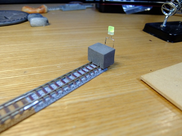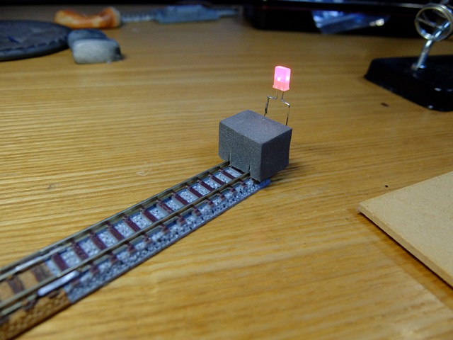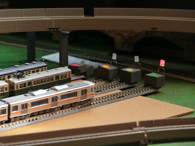 そこでヤード部分に関してはレールではなく、末端(エンドレール)に表示灯を設置することにした。