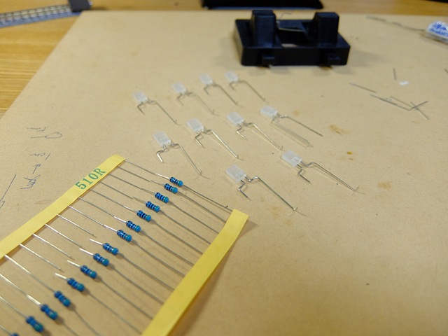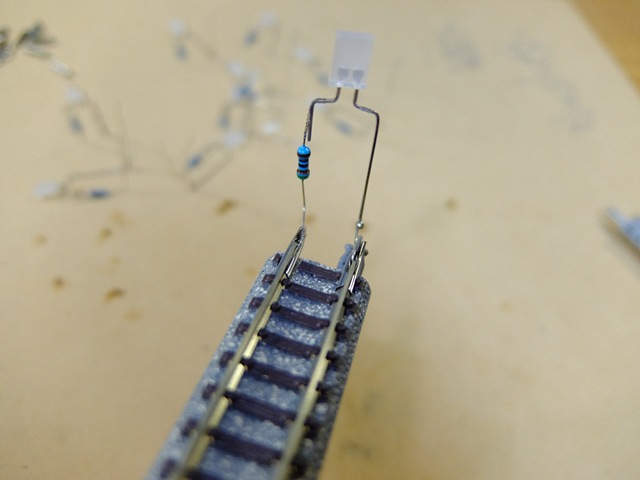 | レール幅に合うように足を広げる | 510オームの抵抗を | はんだ付け |